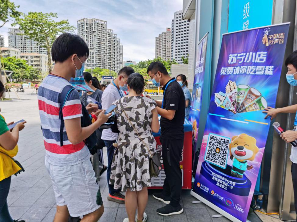 無獨(dú)有偶,群星廣場蘇寧易購門店外的活動(dòng)賽場亦同步在火熱舉行中,7月18日-7月19日,蘇寧聯(lián)合美的一同舉辦中國好聲音復(fù)賽,活動(dòng)現(xiàn)場熱鬧非凡,做好防疫檢查工作的同時(shí),全力維護(hù)現(xiàn)場治安秩序穩(wěn)定,活動(dòng)現(xiàn)場蘇寧小店展開夏日送清涼活動(dòng),免費(fèi)送冰水雪糕,用“清涼一夏”的愛心之舉,給市民帶去一份夏日關(guān)懷。同時(shí)現(xiàn)場參賽選手三十余位埋藏著夢想的音樂人在舞臺(tái)上縱情燃燒,深情獻(xiàn)唱,將活動(dòng)推向了高潮。一同成就粵港蘇寧十九周年最炫的夜晚。