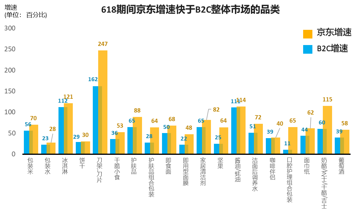 尼爾森618期間監(jiān)測(cè)的快消品類(lèi)數(shù)據(jù)發(fā)現(xiàn),京東增速超過(guò)市場(chǎng)整體增速,從細(xì)分品類(lèi)分析,618期間以食品為代表的大量民生品類(lèi)在京東增速明顯超越大盤(pán),充分展示了消費(fèi)者對(duì)于京東平臺(tái)的信賴(lài)。京東大數(shù)據(jù)則顯示在2020年上半年已經(jīng)有超過(guò)10000個(gè)品牌在京東超市實(shí)現(xiàn)成交額同比增長(zhǎng)100%,7000個(gè)品牌實(shí)現(xiàn)成交額同比增長(zhǎng)200%,5000個(gè)品牌實(shí)現(xiàn)成交額同比增長(zhǎng)300%,有200個(gè)品牌實(shí)現(xiàn)成交額超億元,超20個(gè)品牌實(shí)現(xiàn)成交額超10億。