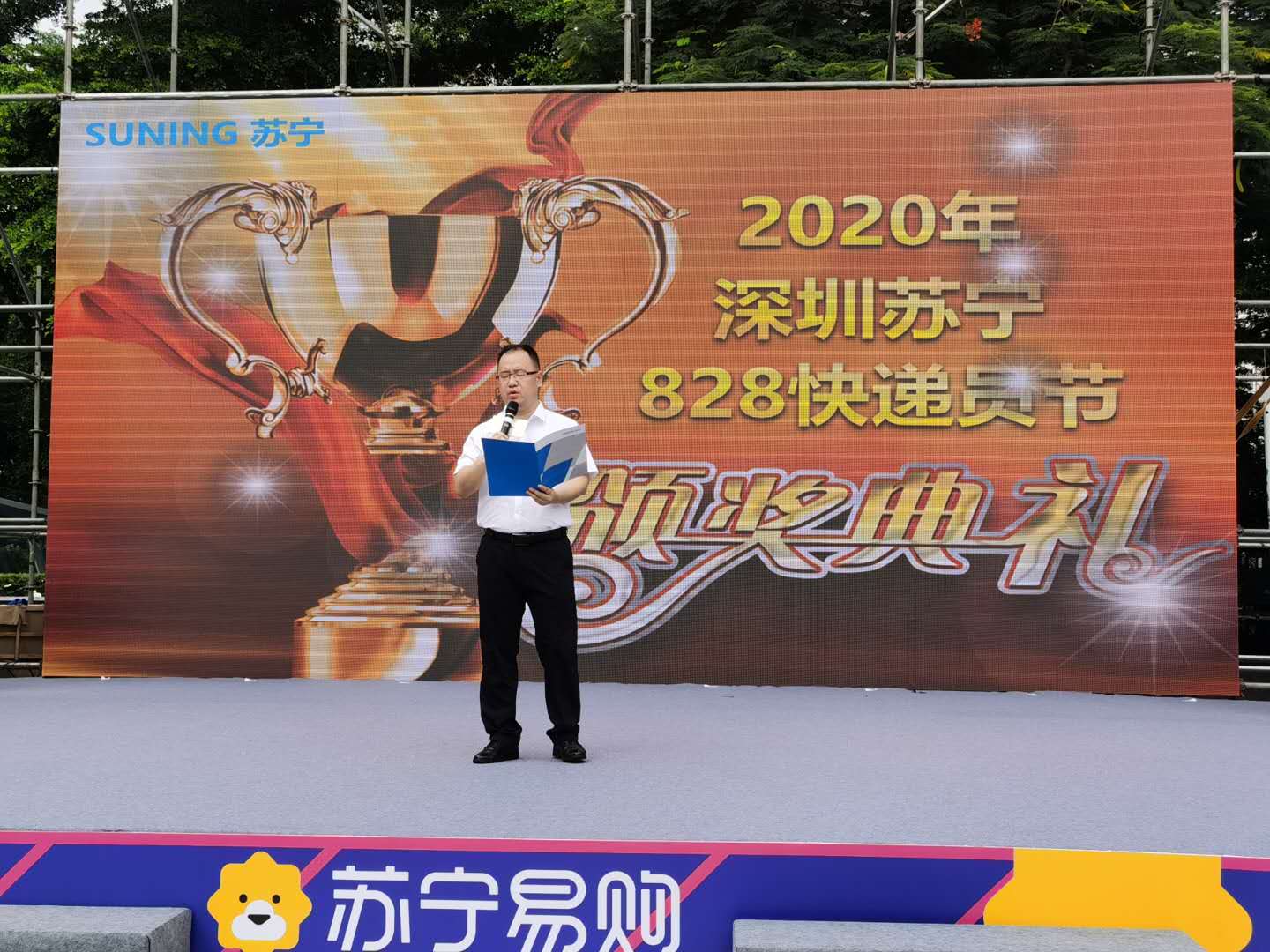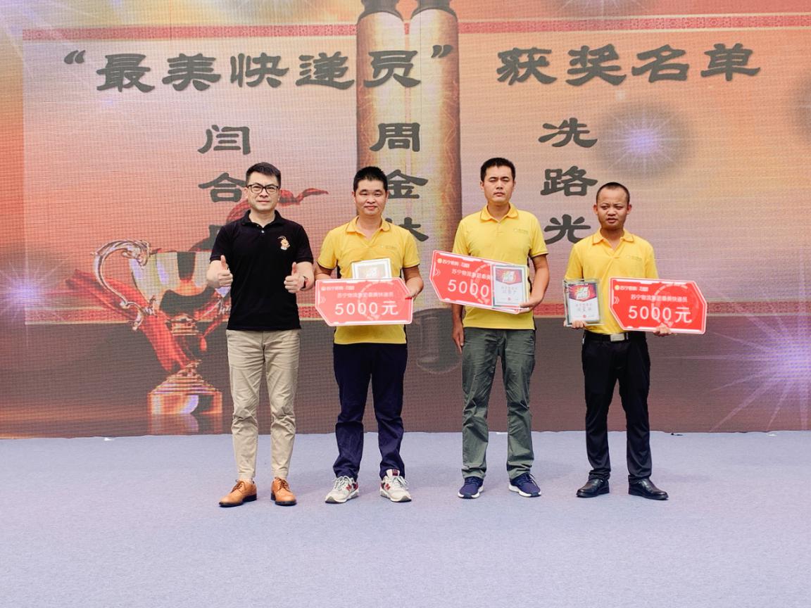 粵港蘇寧快遞員頒獎慶典于28日上午10:30舉行,蘇寧易購深圳大區(qū)家電公司總經(jīng)理彭俊、深圳大區(qū)物流公司總經(jīng)理楊保及相關(guān)負責人等出席了此次活動。慶典活動上,彭俊表示,“本屆快遞員節(jié)主題為“進無所懼”,喻意蘇寧快遞在2020年不懼風浪、一往無前。今818,集團全新升級了“專注好服務(wù)”的品牌主張,變革、創(chuàng)新、引領(lǐng),服務(wù)更是物流集團的核心理念,快遞員節(jié)既為了致敬拼搏在一線全體遞員們,也是表達蘇寧快人堅定迎接挑戰(zhàn)、開啟新征程的勇氣。”