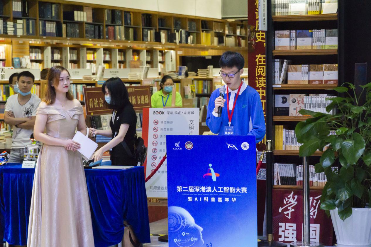 發(fā)布會(huì)現(xiàn)場(chǎng),主辦方還特別邀請(qǐng)了首屆深港澳人工智能大賽冠軍選手——南科大附屬中學(xué)的張繼元同學(xué),作為優(yōu)秀參賽代表發(fā)表感言。在首屆大賽中,張同學(xué)獲得了有目共睹的成長(zhǎng),他表示:“感謝深港澳人工智能大賽暨AI科普嘉年華活動(dòng),給予了深港澳三地青少年同臺(tái)競(jìng)技的平臺(tái),讓三地青少年有了了解祖國(guó)發(fā)展歷程以及現(xiàn)在的輝煌成就的機(jī)會(huì),這同時(shí)也增強(qiáng)了我們年輕一輩的民族自尊心,自己在機(jī)器人大賽所倡導(dǎo)的創(chuàng)新教育理念下,堅(jiān)持不懈,努力奮斗,報(bào)效祖國(guó),回報(bào)父母,服務(wù)社會(huì)”。
