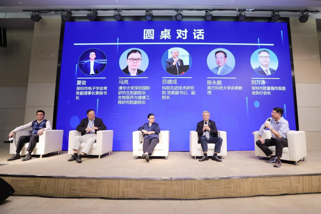在圓桌對(duì)話環(huán)節(jié),深圳市電子學(xué)會(huì)常務(wù)副理事長(zhǎng)兼秘書長(zhǎng)夏俊、深圳市質(zhì)量強(qiáng)市促進(jìn)會(huì)執(zhí)行會(huì)長(zhǎng)劉萬濤等嘉賓以“學(xué)科發(fā)展、科技進(jìn)步、人才成長(zhǎng)和科學(xué)普及等方面的作用”為主題展開交流與討論。
