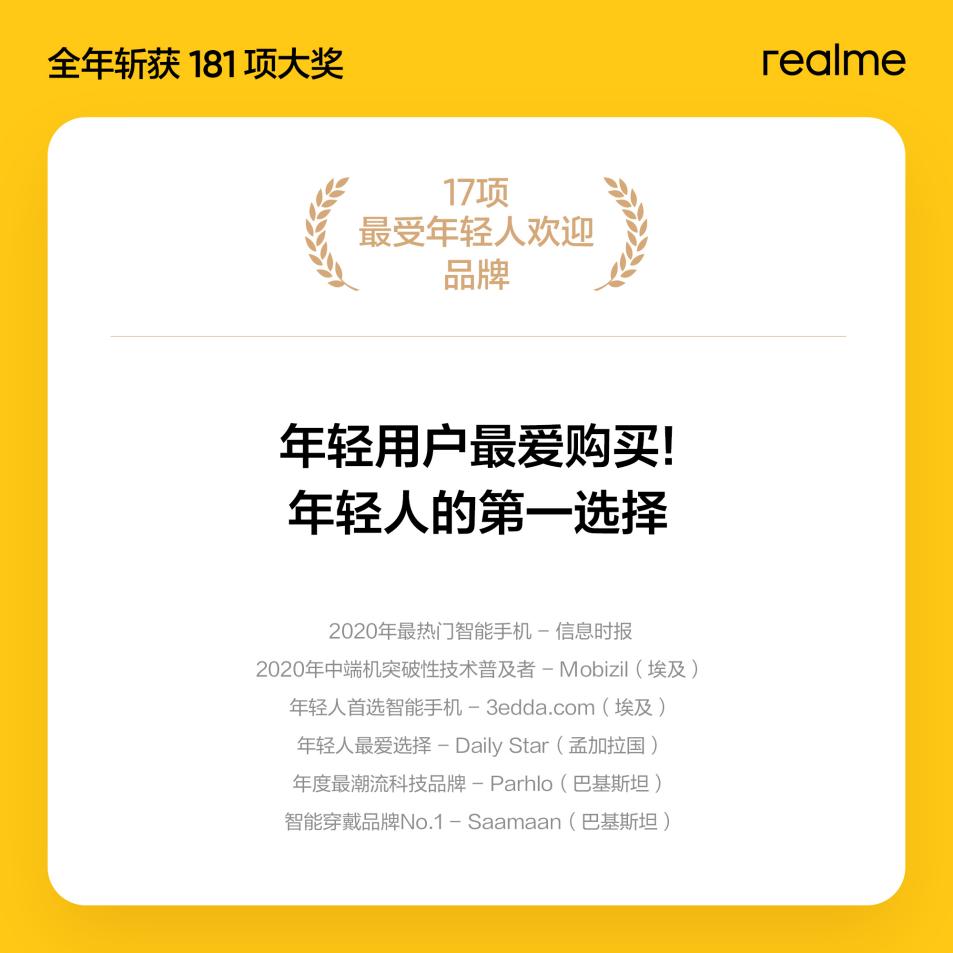 自創(chuàng)立以來,realme一直面向年輕用戶群體,基于對(duì)年輕人審美與偏好的精準(zhǔn)洞察與理解,不斷滿足和超越年輕科技愛好者的需求,這一策略在東南亞、南亞、歐洲、非洲等市場獲得極大認(rèn)可。2020年,全球給予realme“年輕人最喜愛品牌”等相關(guān)獎(jiǎng)項(xiàng)達(dá)17項(xiàng),用實(shí)力證明realme是“年輕人第一選擇”。同時(shí),realme一舉網(wǎng)羅全球各大產(chǎn)品獎(jiǎng)項(xiàng),充分證實(shí)了“好產(chǎn)品會(huì)說話,產(chǎn)品才是硬實(shí)力”這句被商界奉為圭臬的卓見。
