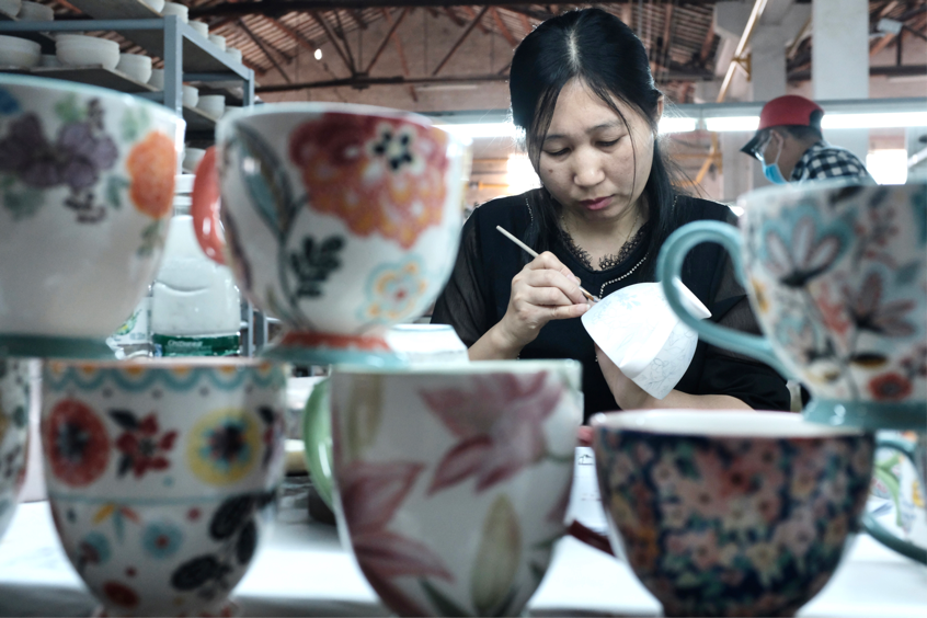 “電商平臺能夠滿足和培養(yǎng)消費(fèi)者需求,讓陶瓷餐具逐漸成為高頻消費(fèi)品。”蔡曉容指出。2018—2020年,這一系列的佳佰彩繪杯,在京東平臺的銷量連續(xù)三年復(fù)合增長率超過100%。去年,聯(lián)源在國內(nèi)市場的銷售額較2019年增長了50 %,達(dá)到歷年最佳,內(nèi)銷比重也由此前的25%提升到了50%。
