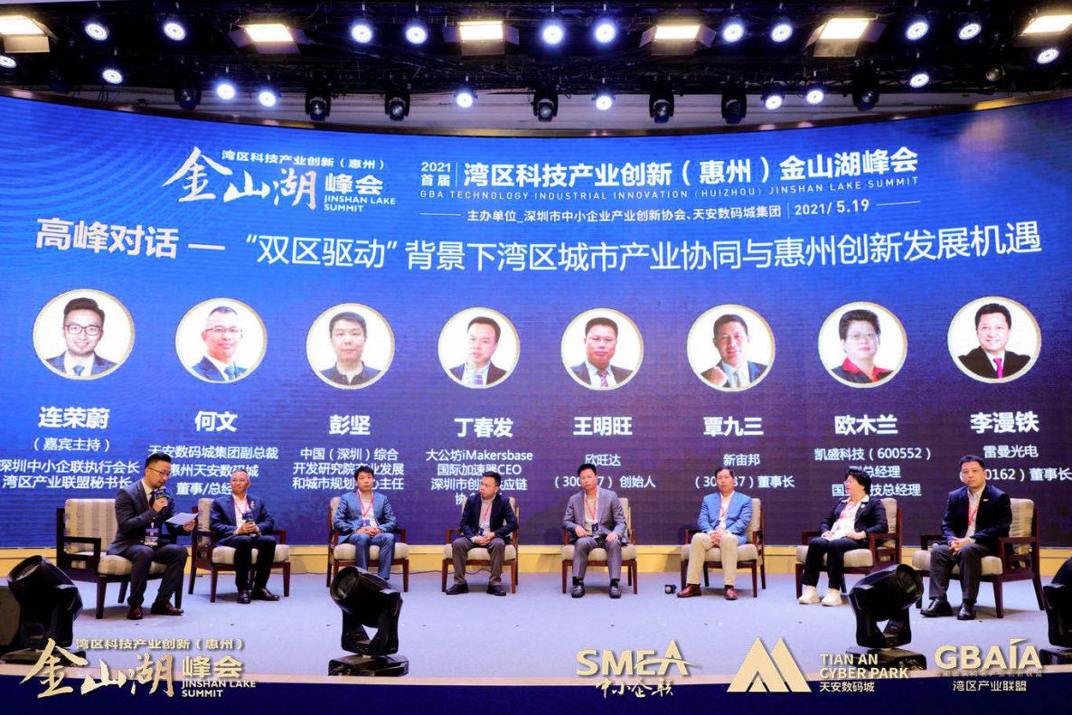 “‘雙區(qū)’建設(shè)是國家領(lǐng)導(dǎo)人和黨中央部署的重大國家戰(zhàn)略,作為粵港澳大灣區(qū)重要節(jié)點(diǎn)和深圳都市圈重要成員,全力支持、積極融入既是惠州鮮明的政治態(tài)度,也是惠州發(fā)展的必然抉擇。相信在惠州市及各級政府部門支持下,深圳市中小企業(yè)產(chǎn)業(yè)創(chuàng)新協(xié)會、天安數(shù)碼城集團(tuán)強(qiáng)強(qiáng)攜手,與各方合作伙伴共同努力,通過每年一屆的“灣區(qū)產(chǎn)業(yè)創(chuàng)新(惠州)金山湖峰會”深入落實(shí)創(chuàng)新驅(qū)動發(fā)展戰(zhàn)略,匯聚粵港澳大灣區(qū)產(chǎn)業(yè)創(chuàng)新資源,深化粵港澳創(chuàng)新合作,助力惠州與灣區(qū)城市間的產(chǎn)業(yè)創(chuàng)新與協(xié)同發(fā)展。