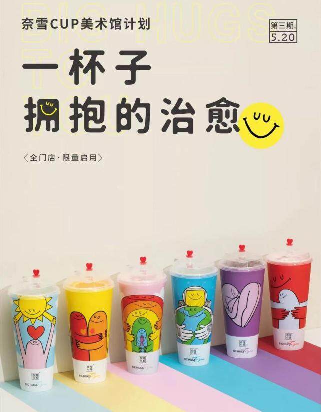 沒有財大氣粗的“品牌集郵”,也沒有投機取巧的抖機靈,奈雪似乎一直都深諳情感營銷的法門,過往也不乏優(yōu)質案例。筆者印象最深的是“CUP美術館計劃”中的“瑞獸杯”和“抱抱杯”。前者是在2020與2021新舊年相交之際推出的,以茶飲杯為載體推出六款意頭極好的瑞獸,寓意“瑞獸相伴時來運轉”,與消費者新年新氣象的希冀不謀而合。