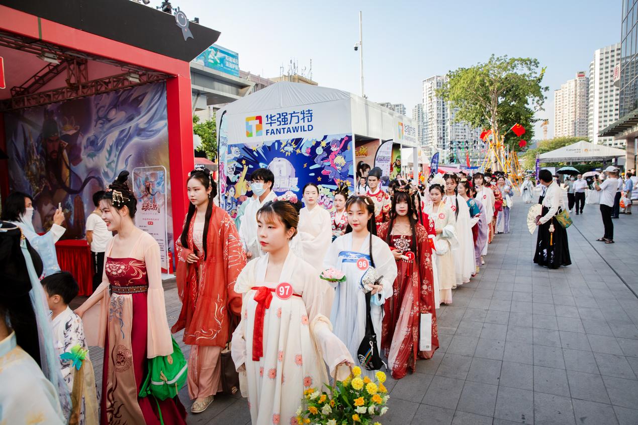 為了提升夜間經(jīng)濟(jì)業(yè)態(tài),節(jié)展期間電玩節(jié)組委會(huì)在每天的16時(shí)至21時(shí)共計(jì)舉辦了三十余項(xiàng)不同類型的賽事活動(dòng),包括COSPLAY大賽、紅白歌會(huì)、國(guó)風(fēng)國(guó)潮大賽、“第四屆王者榮耀全國(guó)大賽城市賽”“英雄聯(lián)盟 ·金鏟鏟之戰(zhàn)線下體驗(yàn)派對(duì)”、主街游戲競(jìng)技場(chǎng)、COSPLAY巡游、漢服巡游、國(guó)風(fēng)走秀等。同時(shí)還邀請(qǐng)知名COSPLAY團(tuán)、人氣COSER熊祁、唯安、組合844樂(lè)隊(duì)、七朵家族舉辦了專場(chǎng)見面會(huì)和簽售會(huì),吸引了大量觀眾駐足圍觀,臺(tái)上臺(tái)下熱情互動(dòng),掀起陣陣活動(dòng)高潮,以沉浸式的體驗(yàn)帶動(dòng)新消費(fèi),打造深圳夜間消費(fèi)新地標(biāo)。