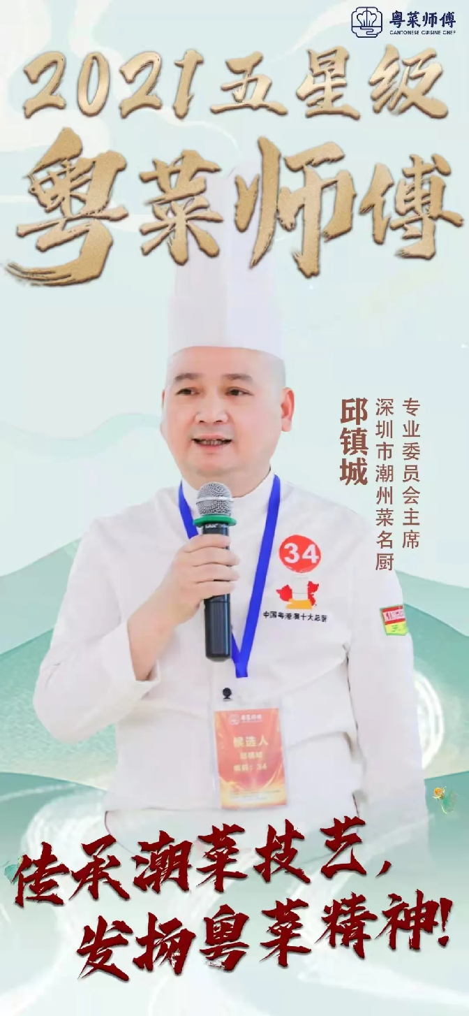 此次評選活動,來自深圳市潮州菜專業(yè)委員會的邱鎮(zhèn)城會長代表深圳餐飲界出戰(zhàn),最終獲得“五星級粵菜師傅名廚”榮譽稱號,是深圳潮州菜系唯一獲此殊榮的五星級名廚。邱鎮(zhèn)城學做潮汕菜30年,是深圳“精細潮州菜”的領軍人物,曾在米盧時代的國家足球隊擔任大廚,現(xiàn)任深圳市潮州菜名廚委員會主席,其烹飪技術屢獲好評,是中國粵港澳十大總廚,還是廣東十大南粵廚王、深圳市十佳行政總廚。邱鎮(zhèn)城在推廣、宣傳潮汕美食的同時,將潮汕文化推向首都、傳播全國,體現(xiàn)的是潮人愛拼敢贏、吃苦耐勞的精神。