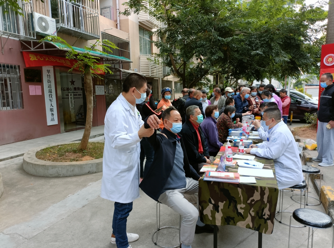 12月19日上午,深圳市人民醫(yī)院疼痛科11名專家與護(hù)士攜帶血壓計(jì)、血糖儀、聽診器、理療儀等儀器到街道退役軍人服務(wù)站開展“愛心義診送健康,為民服務(wù)暖人心”關(guān)愛退役軍人義診活動。為防范疫情風(fēng)險,服務(wù)站將健康服務(wù)分區(qū)域并安排工作人員查驗(yàn)健康碼、行程碼、測體溫,參與人員須佩戴口罩方能進(jìn)入活動現(xiàn)場。在服務(wù)站門口通風(fēng)處設(shè)置血糖與血壓測量處、專家醫(yī)生坐診處,在老兵活動室開展健康知識講座,在黨建活動室和老兵談心室開展身體理療服務(wù)。所有服務(wù)同時開展,退役軍人和居民自主決定參與順序,避免扎堆。