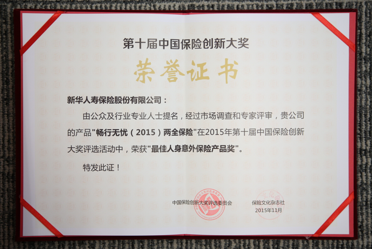 2015年最佳人身意外保險(xiǎn)產(chǎn)品獎(jiǎng)