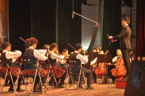 王翔云老師在龍華區(qū)學(xué)校藝術(shù)展演中指揮弦樂(lè)團(tuán)