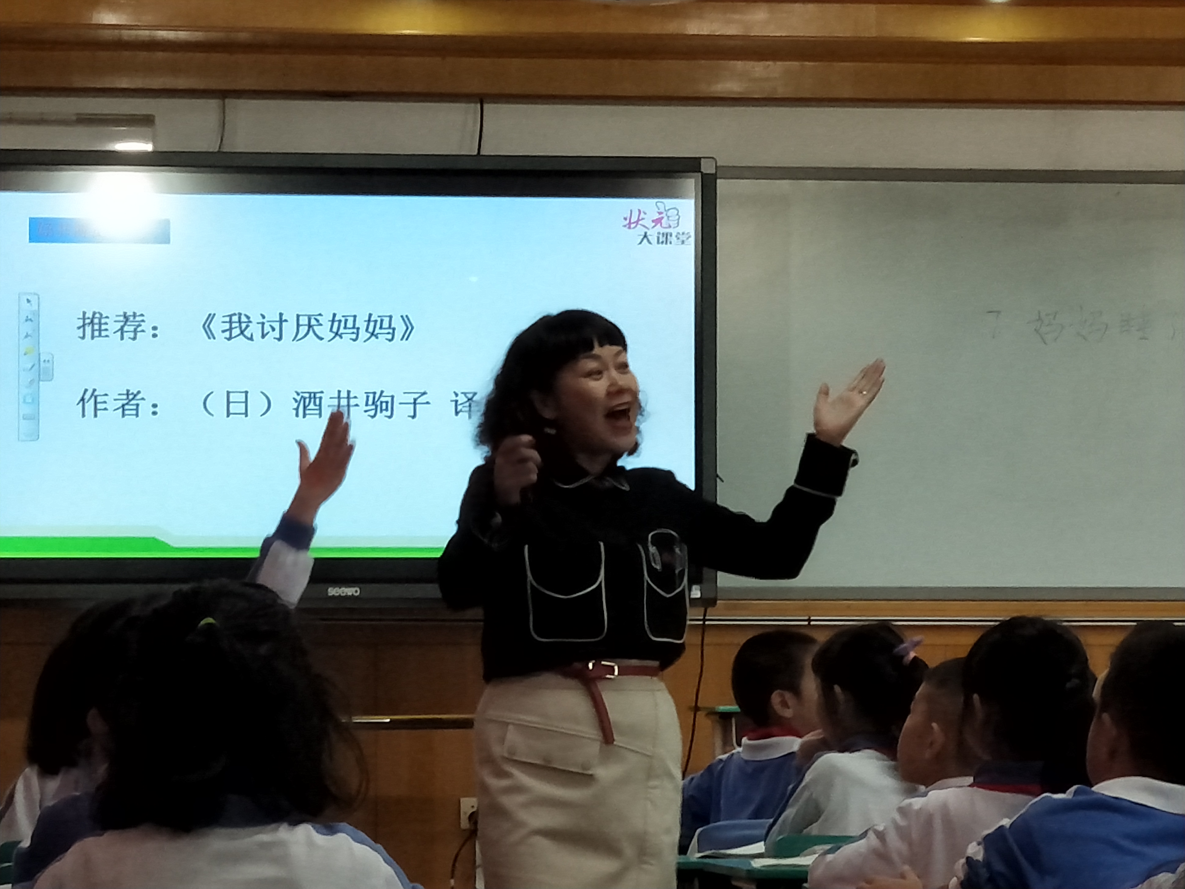 2015年,她還帶領(lǐng)孩子們?cè)谌猩傧汝?duì)建隊(duì)65周年大型慶典活動(dòng)上,展示了一節(jié)主題為“五星紅旗迎風(fēng)飄揚(yáng)”的隊(duì)會(huì)課,獲得與會(huì)的市、區(qū)領(lǐng)導(dǎo)和老師們的高度贊譽(yù)。市團(tuán)少工委大隊(duì)輔導(dǎo)員石老師看了他上的班會(huì)課,說(shuō)“周老師,您帶的學(xué)生太出色了,各個(gè)都是出色的主持人,這節(jié)隊(duì)會(huì)課值得全深圳的中隊(duì)輔導(dǎo)員觀摩!”。今年廣東省教育廳教育研究員姚軼潔副主任聽(tīng)了她一節(jié)隊(duì)會(huì)課,握著她的手激動(dòng)地說(shuō):“上得太好了,已經(jīng)超出了我們編寫(xiě)教材的預(yù)期!”
