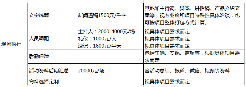 3、后勤保障:舉辦大型活動時,為了保障嘉賓安全,渲染現(xiàn)場氣氛,通常需要有一系列的車輛、安保、道路指引旗幟等工作。深圳新聞網(wǎng)擁有豐富的大型現(xiàn)場活動把控經(jīng)驗(yàn),特別是與相關(guān)部門,如城管、公安、交通等主管職能機(jī)構(gòu)溝通、協(xié)調(diào)、策劃的能力,保障活動安全,萬無一失。具體費(fèi)用需要依據(jù)項(xiàng)目的規(guī)模、時長、等級來具體商議。