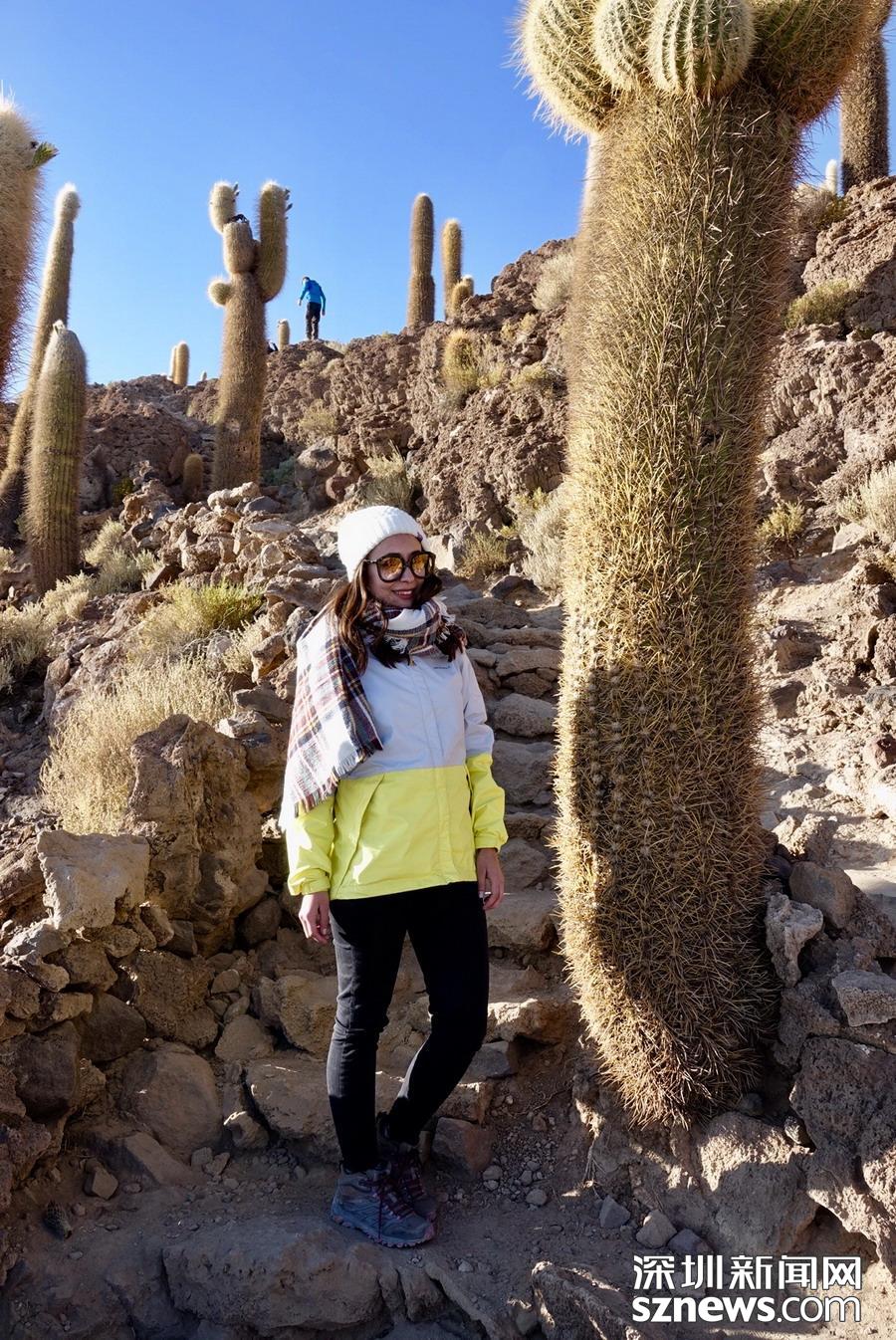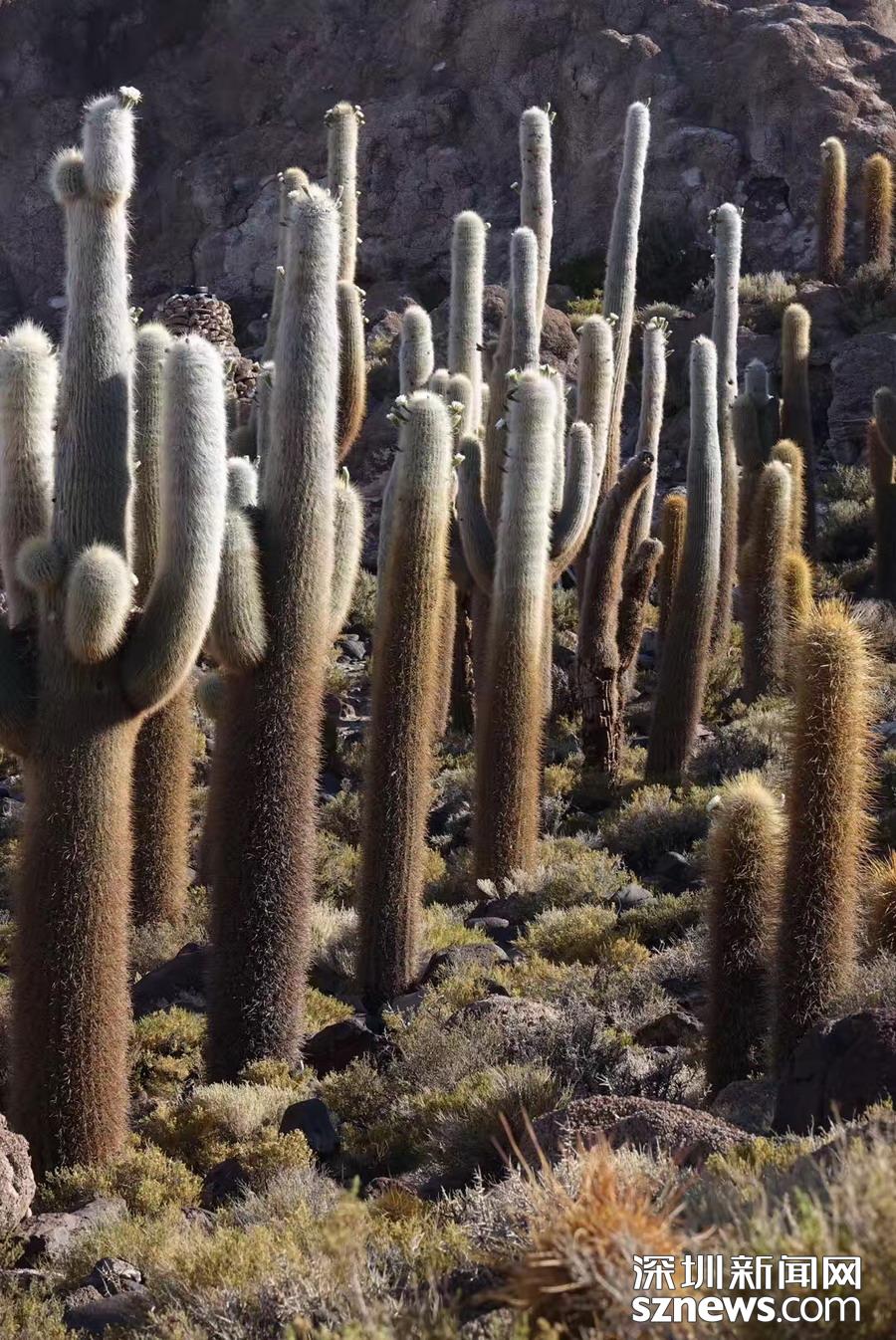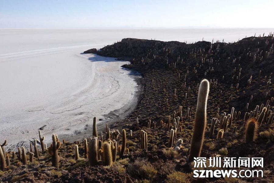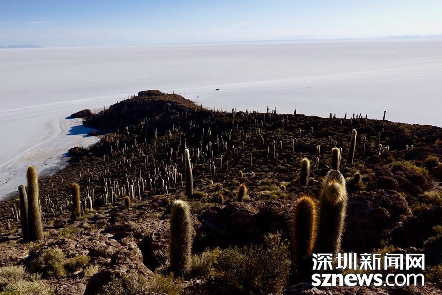 深圳新聞網(wǎng)訊 烏尤尼鹽沼中,有一個孤立的小山頭,猶如瀚海中的小島。島上長滿巨大的仙人柱,據(jù)說有的已經(jīng)生長了上千年。這種形狀各異、耐鹽堿、耐干旱的熱帶植物豐富了鹽沼的風光,構成絕無僅有的世界奇觀。 李仁奇 攝