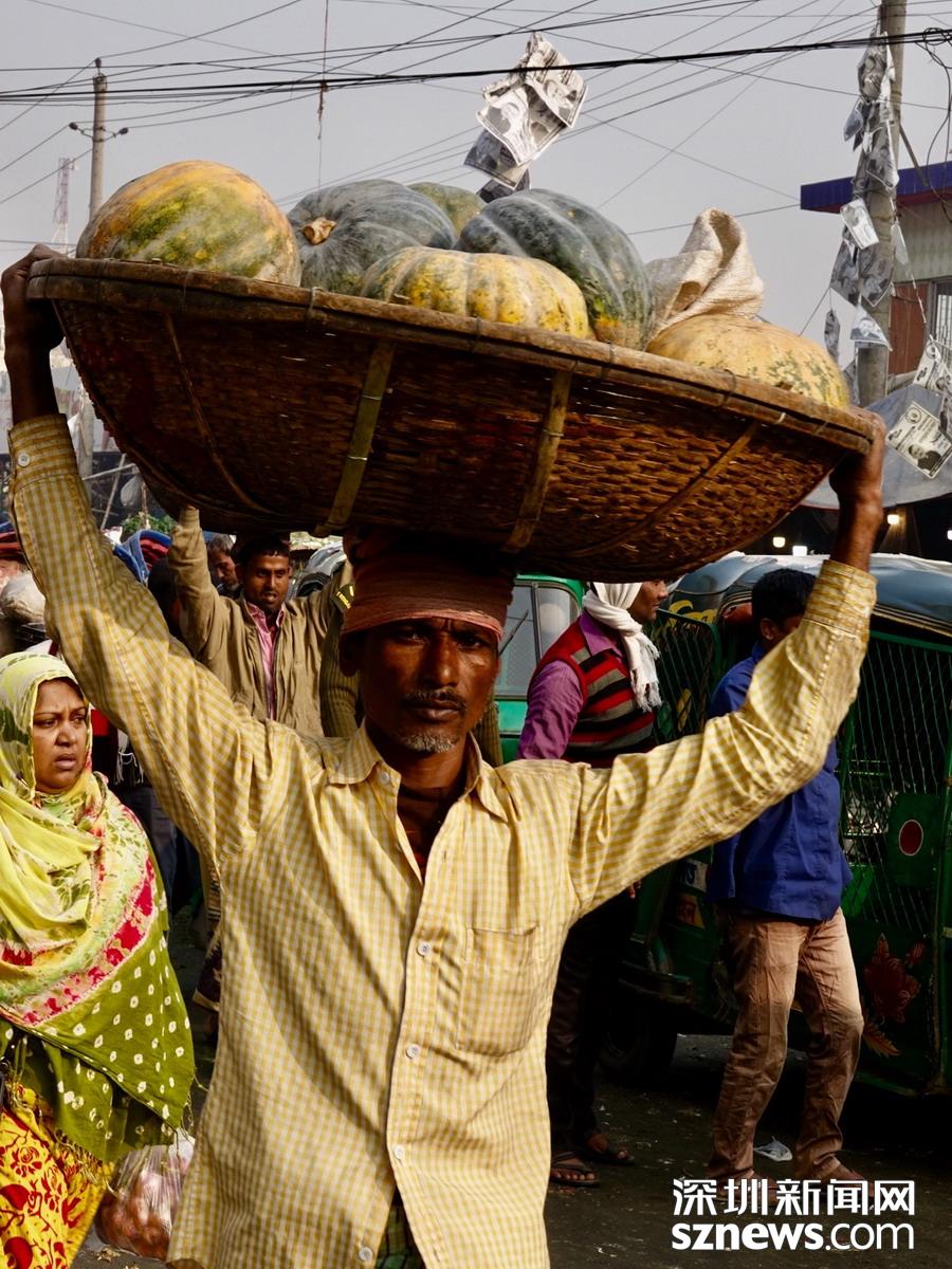 深圳新聞網(wǎng)2019年1月8日訊 在孟加拉,無論城市,還是鄉(xiāng)下,人們頭頂重物的情景,確實(shí)是無處不在的。李仁奇攝