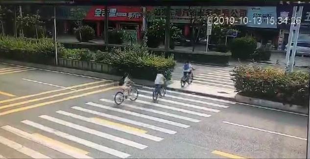 深圳一學(xué)生騎車通過(guò)斑馬線被撞。圖為監(jiān)控視頻所拍攝畫面。