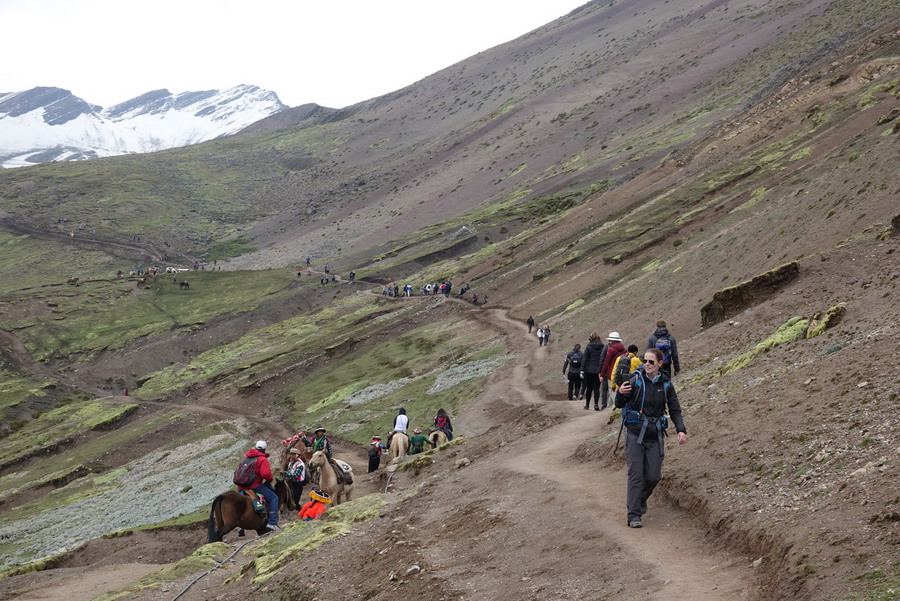 住在庫斯科的游客一般需要于凌晨三、四點(diǎn)鐘出發(fā),經(jīng)過兩小時(shí)柏油路上行車和途中早餐,再沿崎嶇山路顛簸三小時(shí),九點(diǎn)至十點(diǎn)抵達(dá)彩虹山大本營(yíng),然后開始登山。李仁奇攝
