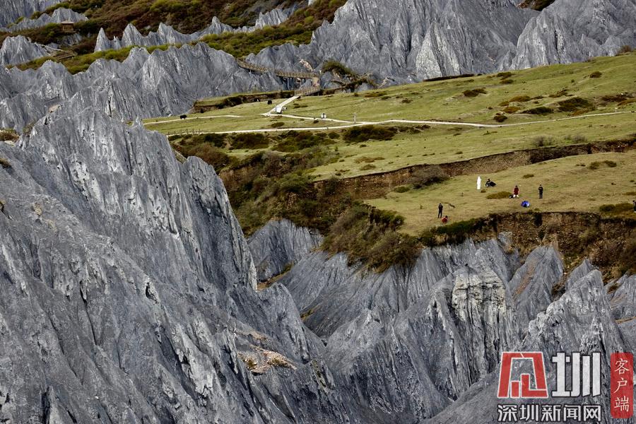 它是3年前開發(fā)建成的網(wǎng)紅景點(diǎn),全世界獨(dú)有的糜棱巖石林,面積4.7平方公里,海拔約3500米,被命名為“中國墨石公園”。李仁奇 攝