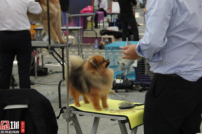 一位寵物美容師正在為犬只修剪毛發(fā)。