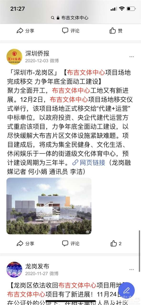 有關(guān)布吉文體中心的相關(guān)新聞報(bào)道截圖
