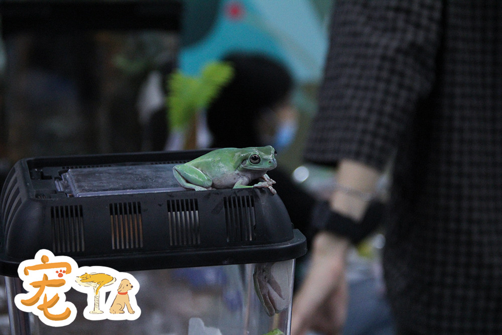 異寵展示區(qū)的工作人員在向觀眾介紹飼養(yǎng)蛇的注意事項。