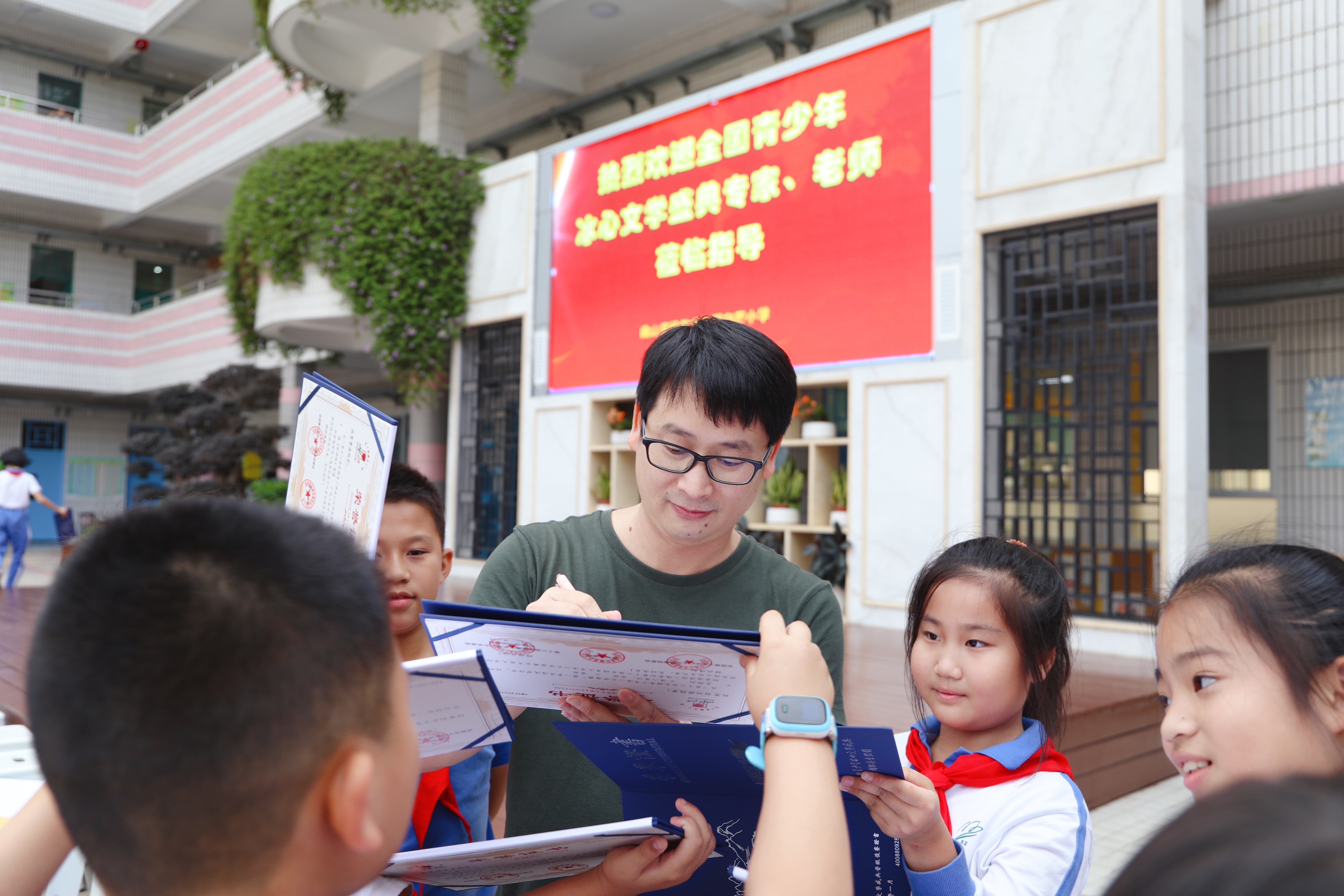 陳詩(shī)哥為孩子們簽名