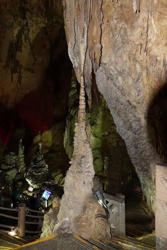 長達(dá)6公里的游覽線路沿途,有十幾個(gè)空間壯闊的“大廳”,奇形怪狀、體量巨大的鐘乳石令人目不暇接。李仁奇 攝