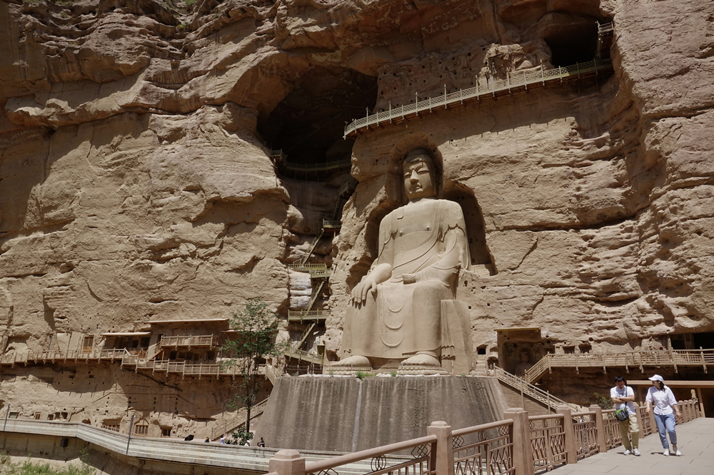 這是炳靈寺石窟最大的一尊彌勒佛大坐像,位于石窟懸崖上,唐代石胎泥塑。依山雕鑿,高達27米,雄渾莊嚴(yán)。李仁奇 攝