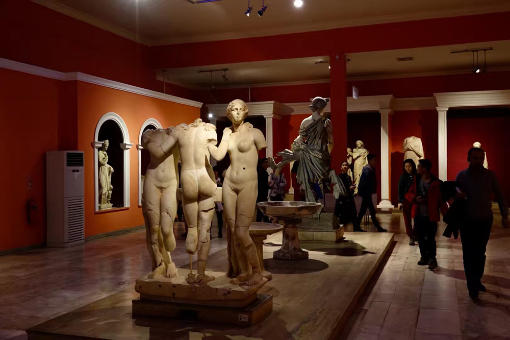 大量公元2—3世紀(jì)的人體雕塑令人目不暇接,這個(gè)時(shí)期也是該地區(qū)歷史發(fā)展中最為繁盛的階段。館內(nèi)陳列著眾多古希臘古羅馬眾神的雕像,號稱“萬神殿”。這些雕像是從公元8世紀(jì)的古墓里面發(fā)掘出來的,包括眾神之神宙斯、天后赫拉、智慧女神雅典娜、愛情與美麗女神阿芙羅狄忒、太陽神阿波羅、大力神赫拉克勒斯等。李仁奇 攝