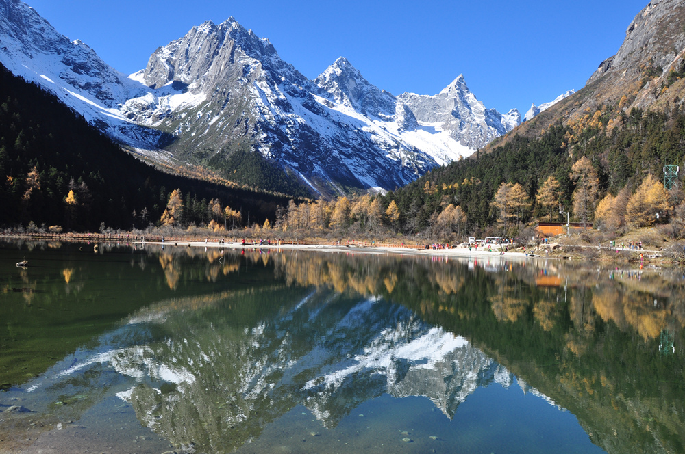 四姑娘山俏麗的身影倒映在天際湖內(nèi),此等美景入詩(shī)入畫(huà)。李仁奇 攝