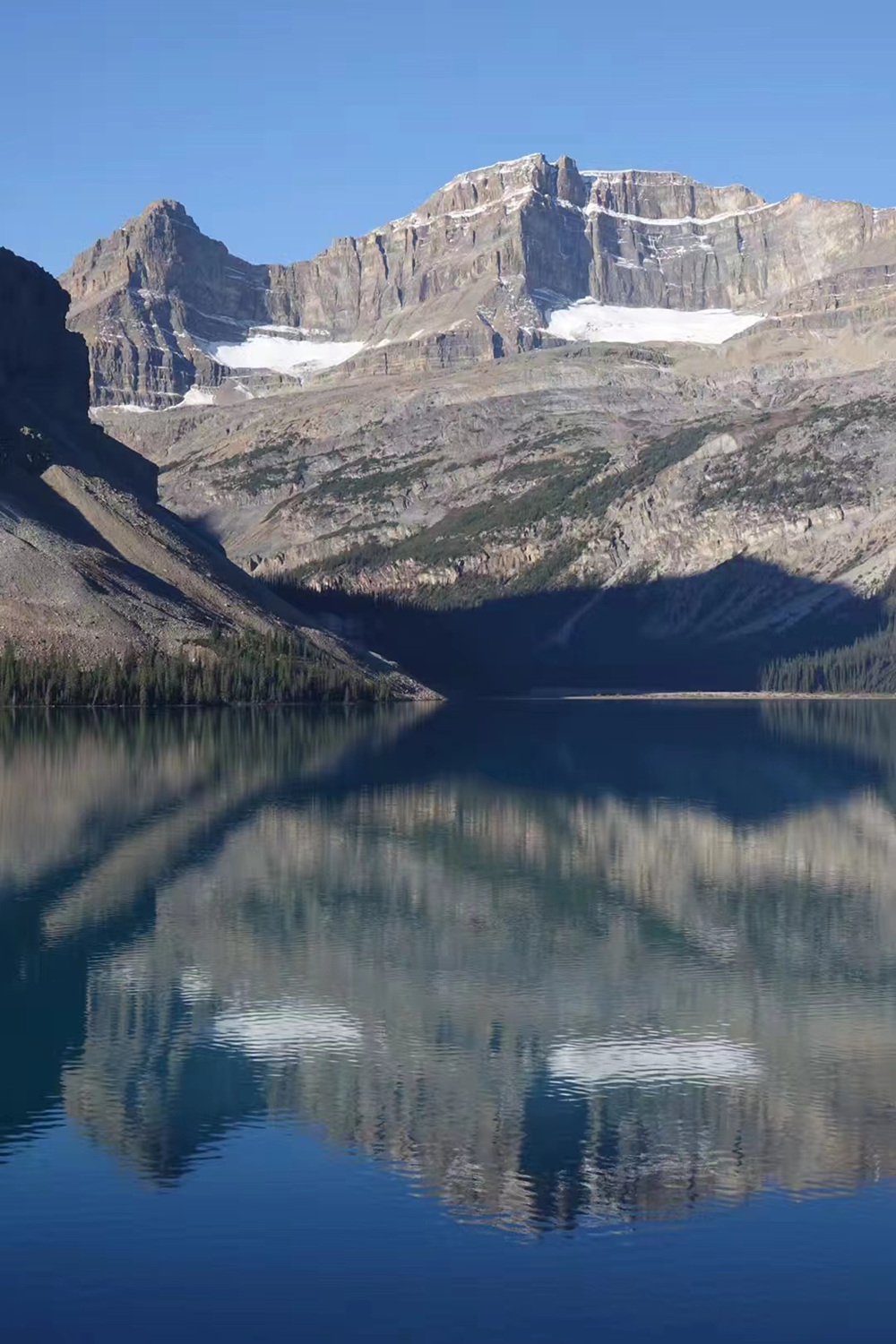翠藍色的湖面倒映著周圍的碧空雪峰,極具誘惑力。李仁奇 攝