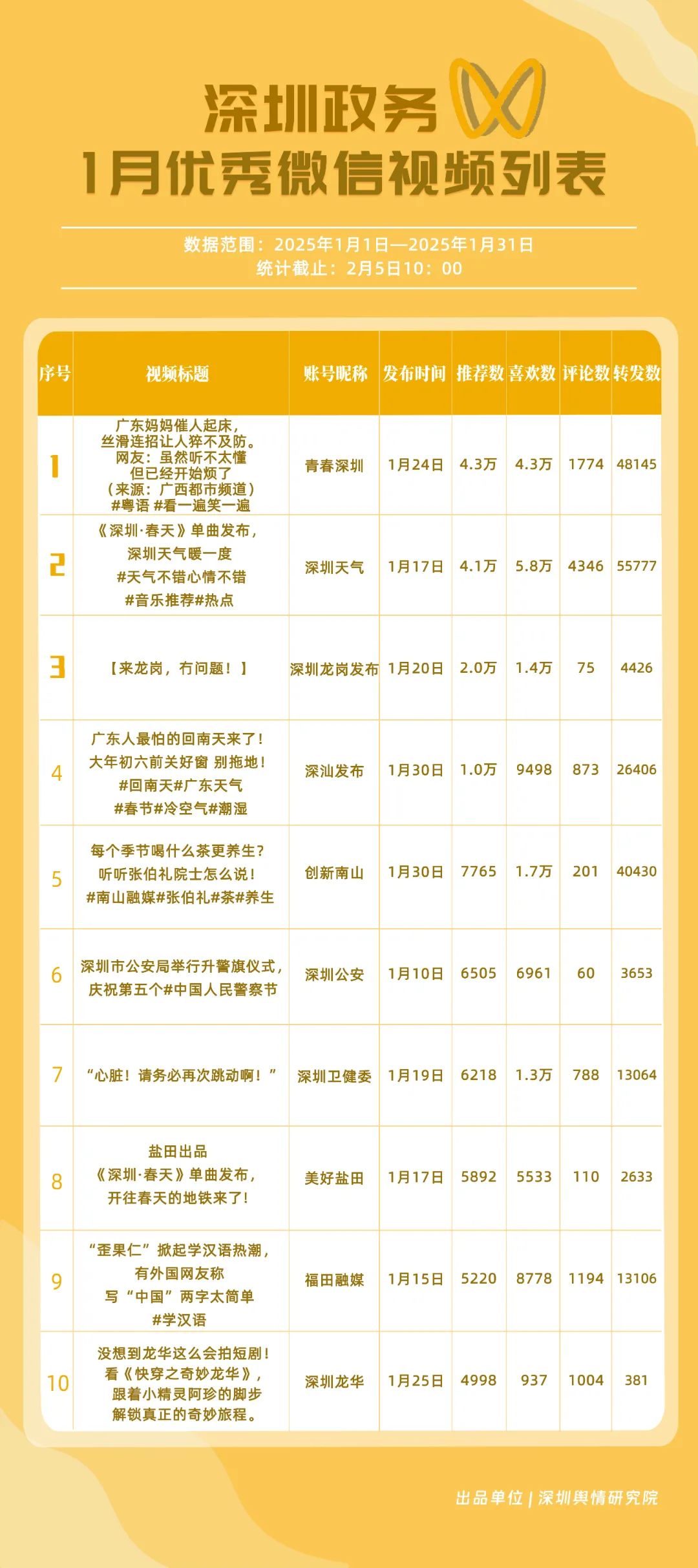四、1月深圳優(yōu)秀政務(wù)新媒體賬號(hào)