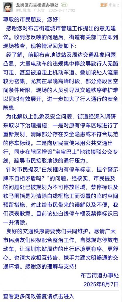 良好的交通秩序需要我們共同維護(hù)。懇請廣大市民朋友們積極配合整治工作,自覺規(guī)范停放電動(dòng)車,讓深圳東站周邊的出行環(huán)境更有序、更舒心。也請大家相互轉(zhuǎn)告,攜手共建文明暢通的交通環(huán)境。感謝您的理解與支持!