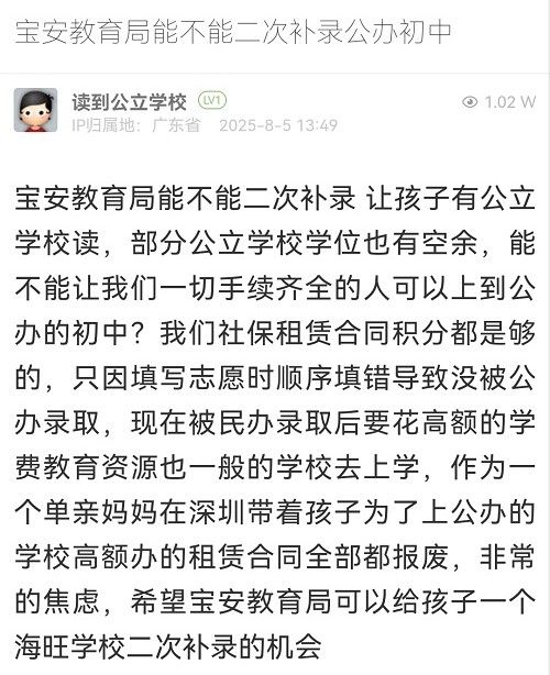 9. 帖文《寶安教育局能不能二次補(bǔ)錄公辦初中》