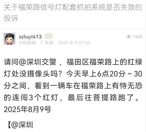 29. 帖文《關(guān)于福榮路信號燈配套抓拍系統(tǒng)是否失效的投訴》