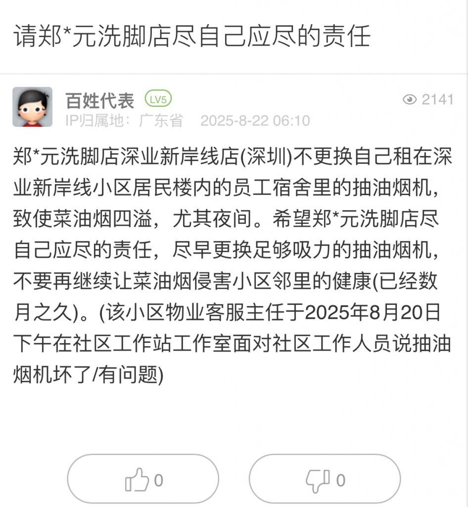 接報(bào)后,海裕社區(qū)工作人員走訪物業(yè)管理處了解情況。據(jù)物業(yè)管理處反映,該業(yè)主因家中存在嚴(yán)重油煙味要求物業(yè)對(duì)所述房屋油煙問(wèn)題進(jìn)行排查并處理。所述房屋租戶表示近期已關(guān)緊門窗且不做飯,期間仍反饋有油煙味,認(rèn)為此油煙問(wèn)題不是其導(dǎo)致的,懷疑是物業(yè)油煙排放管道問(wèn)題。物業(yè)管理處相關(guān)負(fù)責(zé)人表示,此前已安排物業(yè)工作人員至所述房屋家中查看了油煙管道情況,發(fā)現(xiàn)該戶油煙機(jī)內(nèi)部及管道接口處存在大量油污,未及時(shí)清理,存在明顯使用痕跡和油漬積累,可能是導(dǎo)致油煙反味的原因之一,已計(jì)劃于8月30日前安排專業(yè)的清潔人員,前往所述房屋對(duì)抽油煙機(jī)及管道接口進(jìn)行徹底的專業(yè)清洗維護(hù),以從根本上消除此處的油污隱患。海裕社區(qū)將持續(xù)跟進(jìn)此事件的整改進(jìn)度,督促物業(yè)公司按時(shí)完成專業(yè)清洗工作,關(guān)注清洗效果。同時(shí),建議物業(yè)公司對(duì)整棟樓的公共油煙管道進(jìn)行一次全面排查,以確保系統(tǒng)正常運(yùn)行,徹底解決油煙擾民問(wèn)題,保障全體住戶的居住環(huán)境。