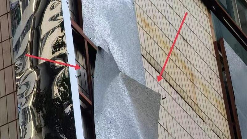松泉山莊外墻鐵皮松脫存隱患,已督促責(zé)任人拆除