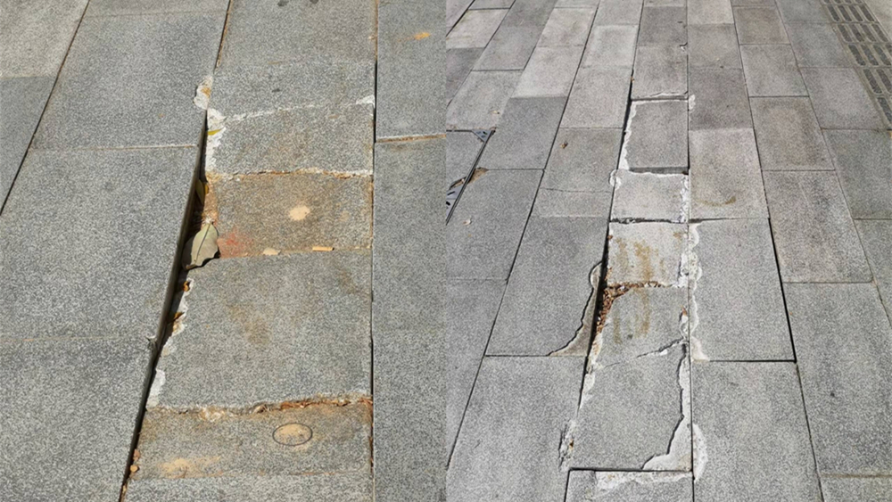 松崗人行道地磚破損盼修復,官方:核實情況后處理