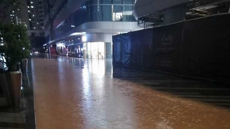 南山南海公園來福士廣場積水,回應(yīng):已清理淤泥堵塞