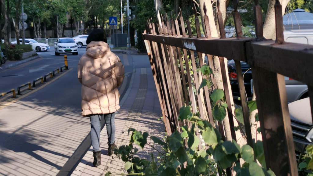 由于竹香一路一側(cè)人行道通行距離不足一米,且靠近深南汽配城的鐵柵欄”張牙舞爪“,搖搖欲墜,向外傾斜擠壓了通行空間,不少家長(zhǎng)讓孩子走在人行道上,自己則是走在車行道上,與身邊的汽車擦肩而過(guò)。